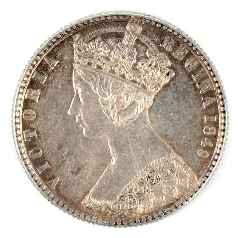 Victoria, Silver Florin, 1849, 'Godless' type (S 3890). Nearly extremely fine.