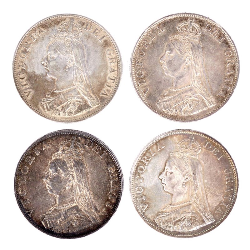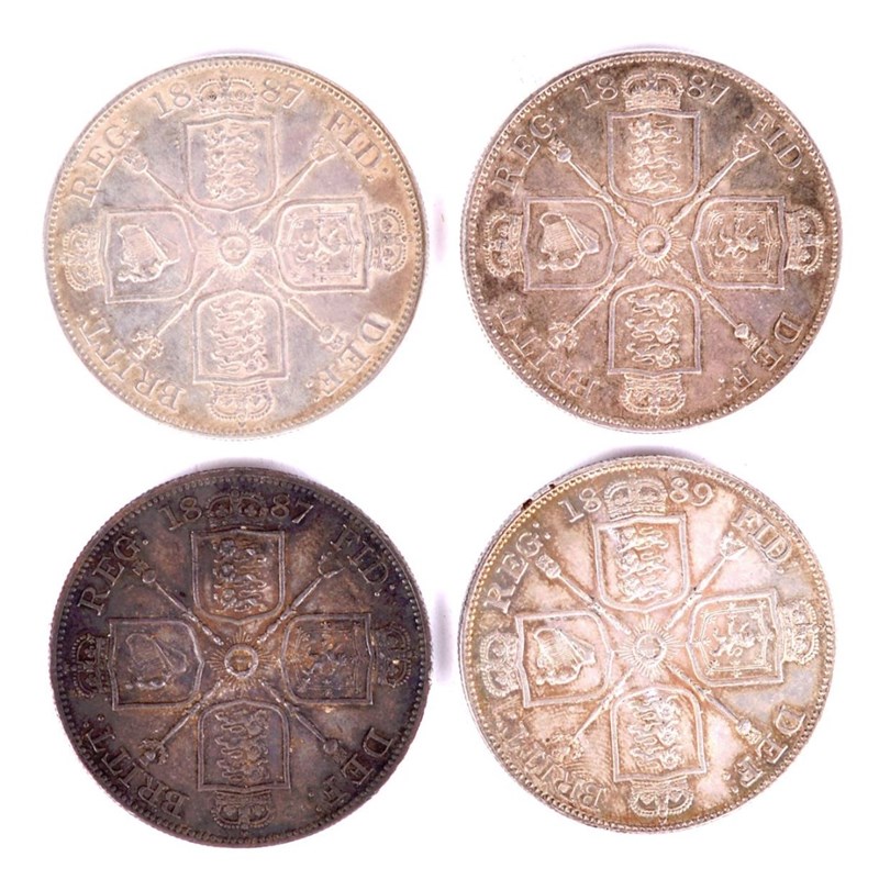 Victoria, Silver Double-Florins (4), 1887 (3), Arabic 1; 1889 (S 3923). Good very fine or nearly extremely fine. [4]