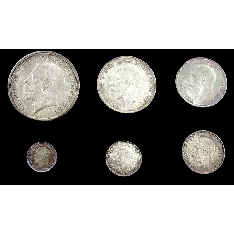 George V, Proof Set of Coins, 1927, silver Crown to Threepence, bare head left, various reverses (S.PS14), in original leather case of issue. Light tone, virtually mint state. (6)