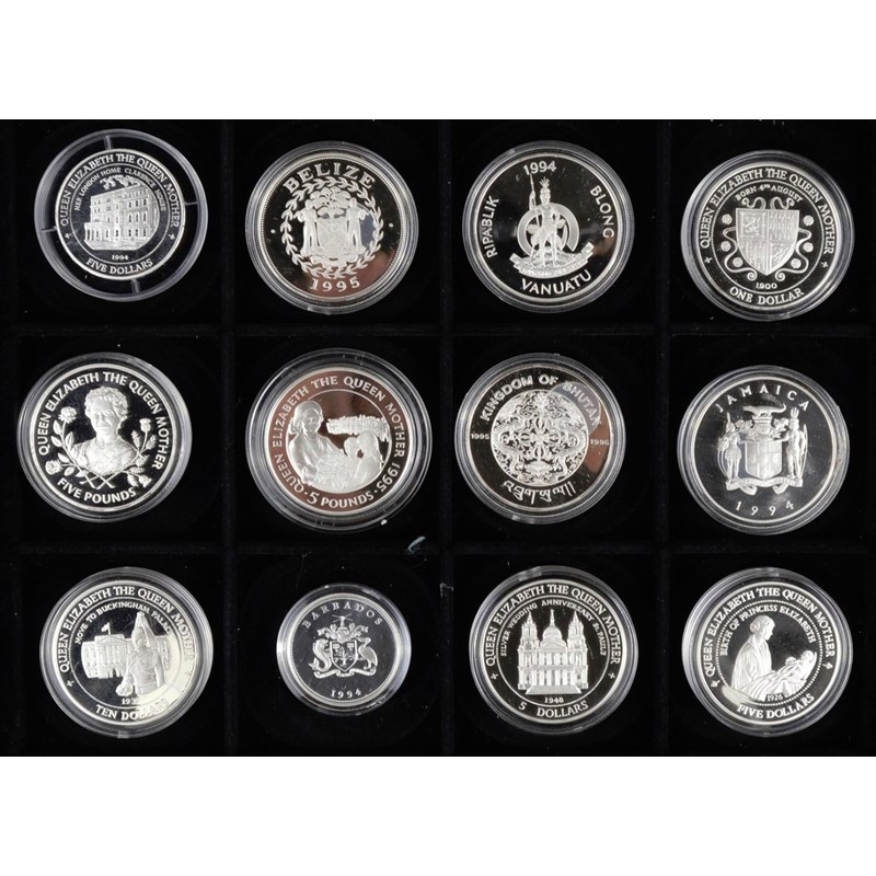 H.M. Queen Elizabeth the Queen Mother, a set of 12 proof coins, mainly crown sized, various Dominions, 1994-1995, in fitted case.