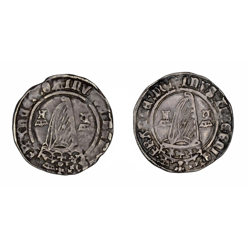 Ireland, Henry VIII, two silver groats, first harp issue (1534-40), mm. crown, initials HK (Henry and Katherine Howard) (S 6474). One better than very fine, the other about very fine. [2]