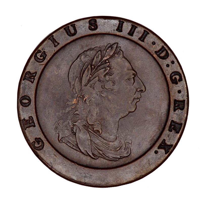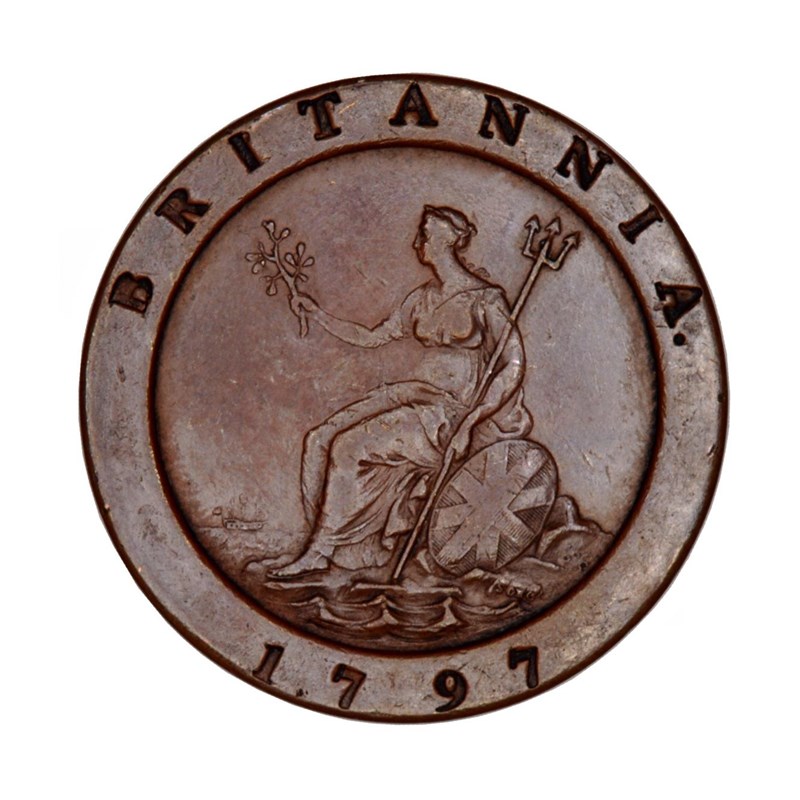 George III, second issue ('cartwheel' coingage), copper twopence, 1797, Soho mint (S 3776). Very fine or a little better.