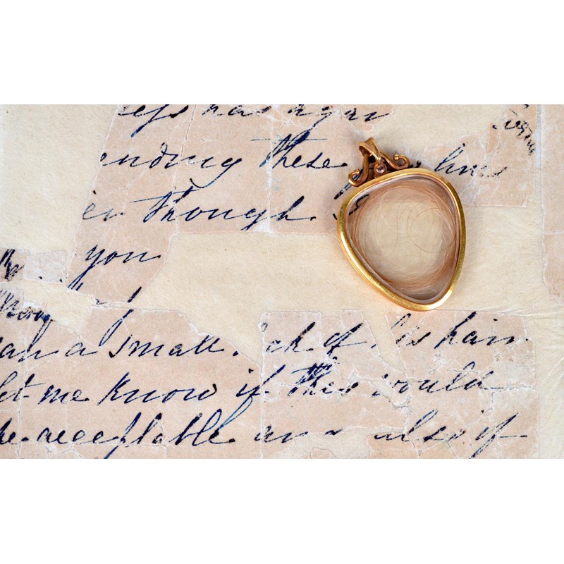 Horatio Nelson: a lock of his hair, held in a double glazed heart shaped locket with yellow metal frame, accompanied by a letter from Horatia Ward (the child of his union with Emma Hamilton), to a supporter, and another from her husband, the Reverend Philip Ward.