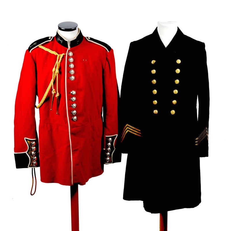 The Pacific Steam Navigation Company: an officer's double breasted blue frock coat, gilt company buttons, three chevrons to each cuff; together with a Welsh Guards other ranks tunic. [2]