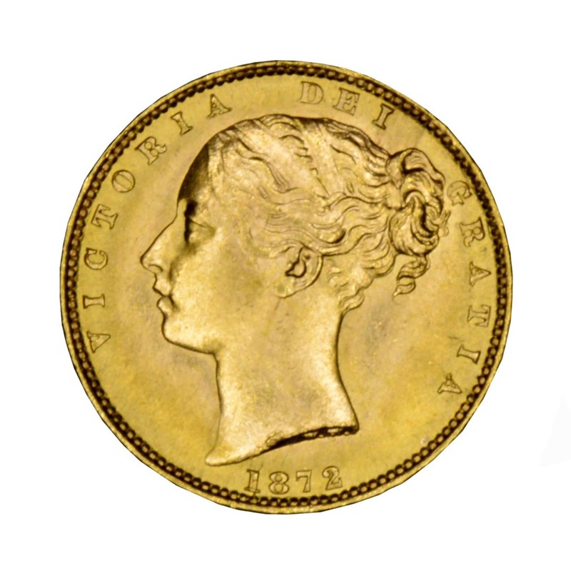 Victoria, gold sovereign, 1872, die number 100 below wreath (S 3853B). About extremely fine.
