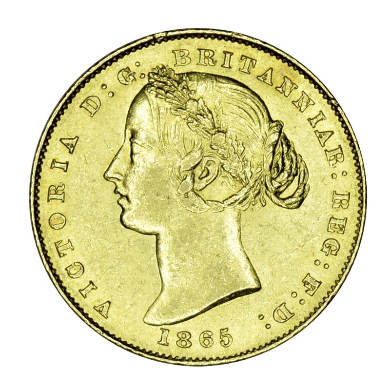 Australia: gold sovereign, 1865, young head with oak leaves, Sydney Mint (KM 4; F 10). Some surface abrasion but little wear, good very fine or nearly extremely fine.