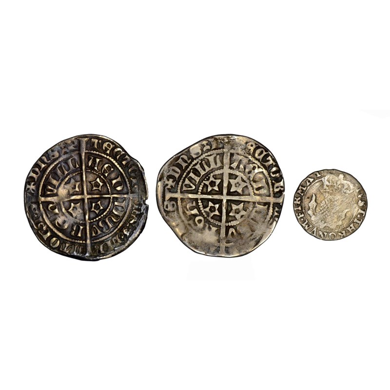 Scotland, three silver coins: David II, second coinage (1357-67), groat, Edinburgh, young bust breaking plain tressure, r. cross and mullets (S 5091), about very fine; Robert II, groat, Edinburgh, treffoils within tressures, nothing behind head (S 5131), fine or better; Charles I, third coinage (1637-42), twenty pence, crown breaking circle, fair or better. [3]