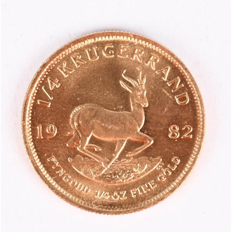 South Africa, gold quarter kruggerand, 1983, extremely fine.