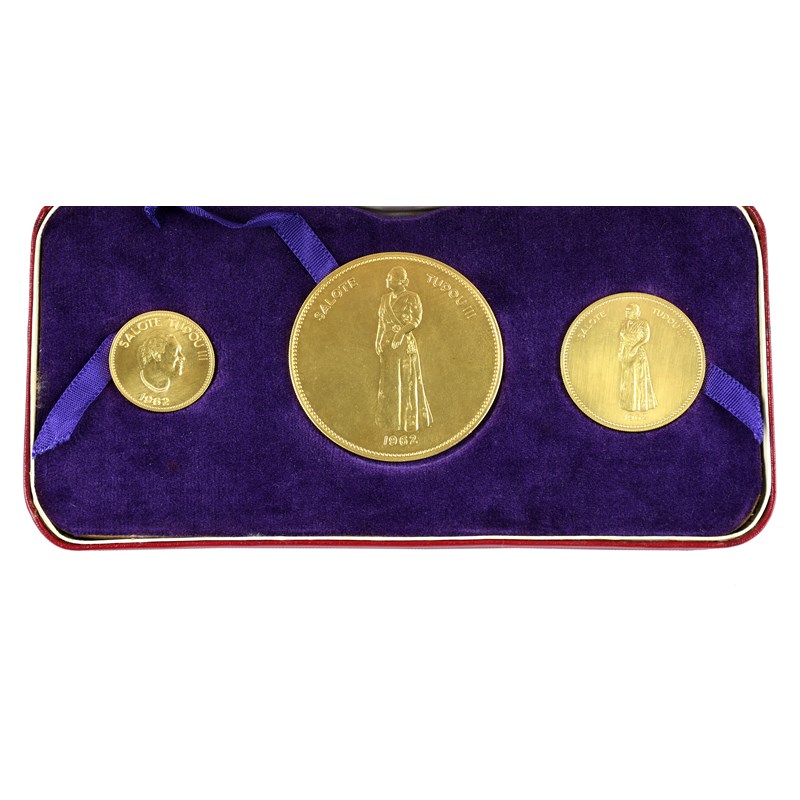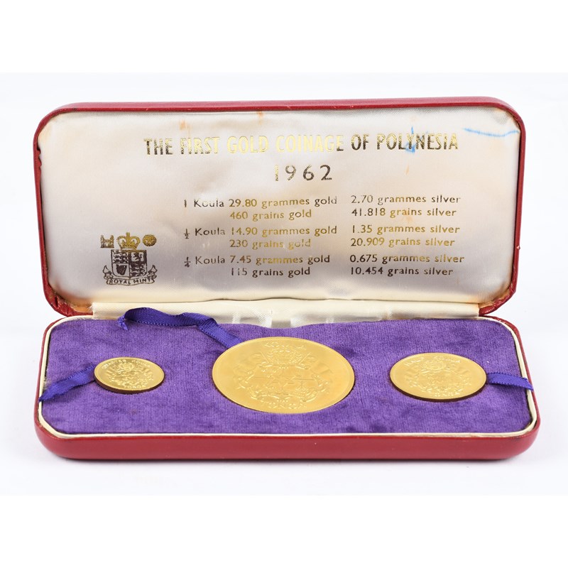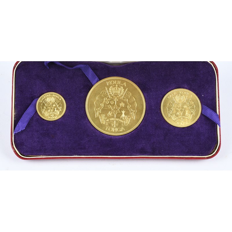 Polynesia: Queen Salote Tupou III, gold proof set (3), 1962, 'The First Gold Coinage of Polynesia', comprising koula, half koula and quarter koula, in presentation case by the Royal Mint, about as struck.