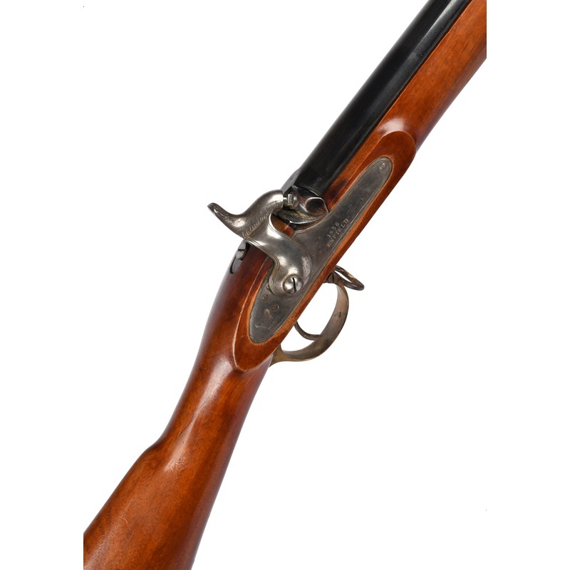 A replica 1858 pattern percussion gun, serial number 1046, 15mm (24 bore) smooth bored barrel 32 in., of military configuration in all other regards, including ladder back sight, bayonet lug, full stock with brass furniture, and steel jag head clearing rod. Section 2 - SGC or RFD required to purchase.