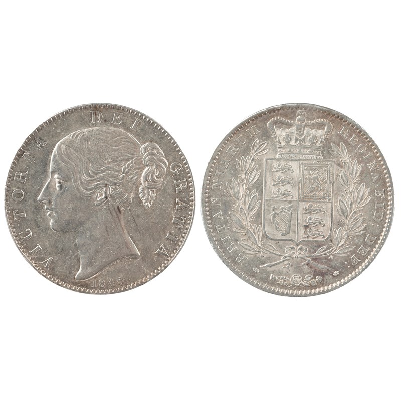 Victoria: silver crown, 1845, cinquefoil stops (S 3882), nearly extremely fine.