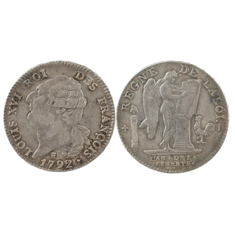 France: Louis XVI, silver ecu, 1792A (KM 615.1), very fine.