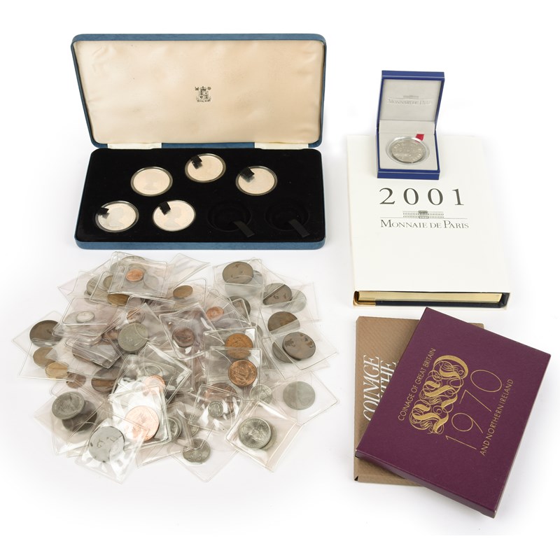 A large assortment of coins, almost entirely 20th century and consisting of British late pre-decimal issues, international base metal and low denomination issues, specimen sets, commemorative strikings, and others. [qty]