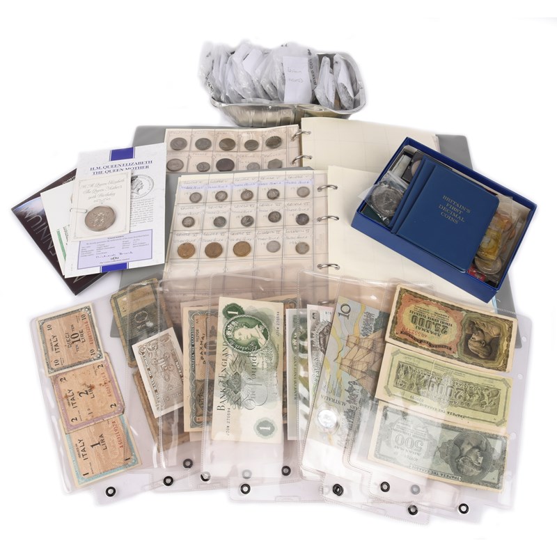 A small collection of coins and bank notes