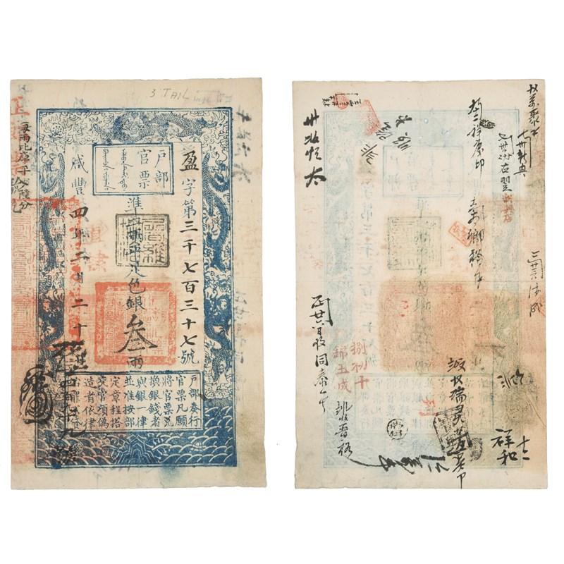 China: Qing Dynasty, a three tael note, 1853-87 issue (possibly 1854), endorsements to reverse (Pick A10), denomination pencilled to margin, otherwise at least fine.