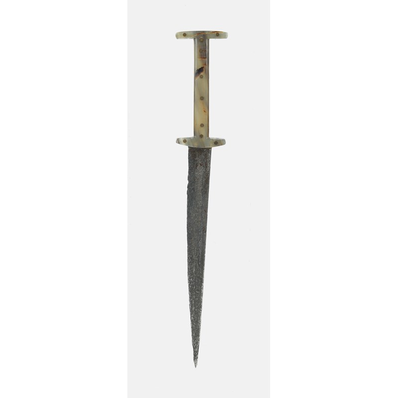 A Swiss or German dagger (baselard), late 14th or early 15th century and later, tapering blade 8.75 in., of narrow triangular section and with a fuller to each side close to the back, the I-shaped hilt with replacement polished horn grips.