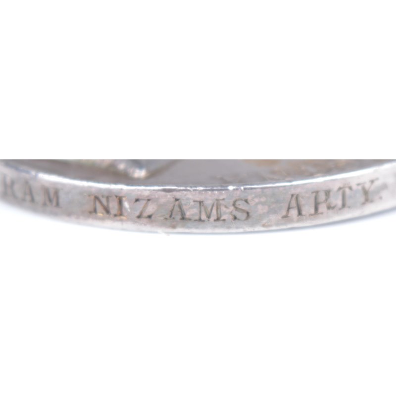 The re-naming is done in a style very like other examples issued in India to various forces and is possibly near contemporary. It appears that a contingent of Artillery belonging to the Nizam of Hyderabad did serve with the British and H.E.I.C. forces in the First Anglo-Burmese War.