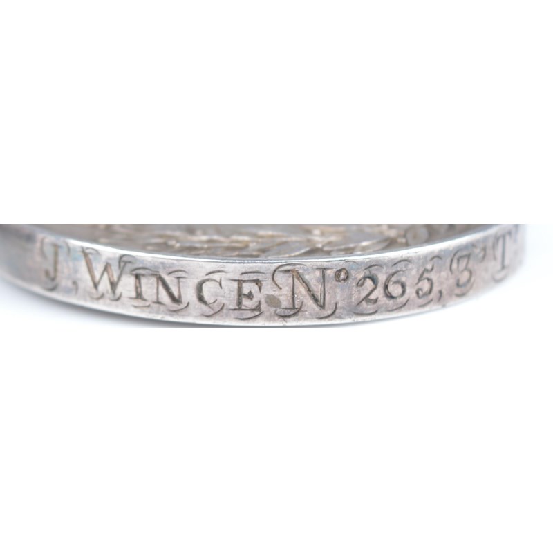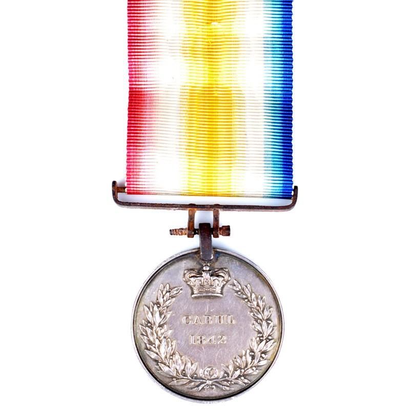 A Cabul Medal to J. Wince, Bengal Horse Artillery, Cabul 1842 reverse, steel clip and straight bar suspension with screw (J. WINCE No 265 3 Tp B H ARTY) engraved in serif capitals with scrolling highlights. Contact marks to obverse, otherwise good very fine, suspension rusted.