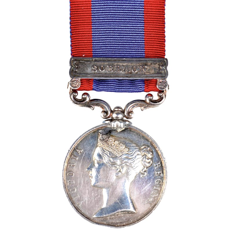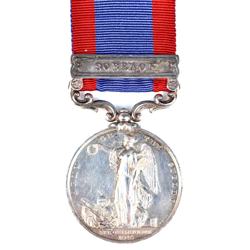 A Sutlej Medal to Gunner F. Gough, Bengal Horse Artillery, Ferozeshuhur to the exuerge, clasp; Sobraon (GUNNER F: GOUGH 3RD BRIGADE H: AY), impressed. Edge knock below bust, otherwise nearly extremely fine.