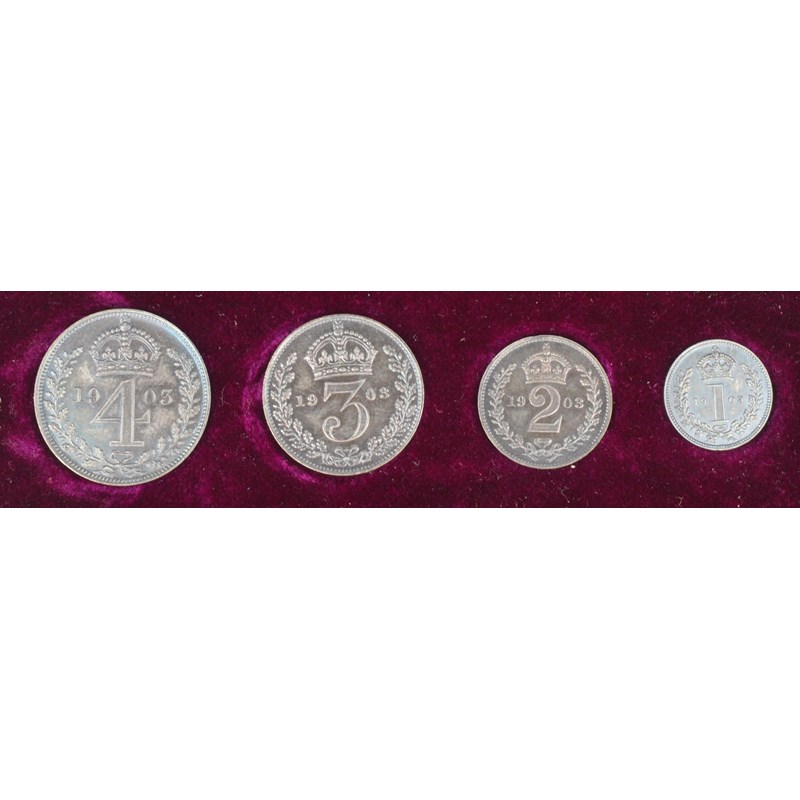 Edward VII, silver maundy set, 1903 (S 3985), in original case, attractively toned, some hairlines but otherwise about as struck.