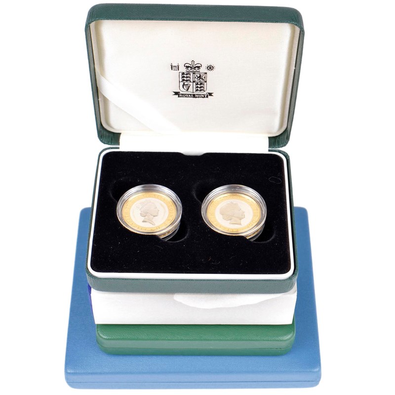 A collection of modern British silver proof coins: piedfort one pound (4), 1994, 1995, 1996 and 1997, cased together (S 4337-40); two pound two coin set, 1997-98 (S 4318, 4570); fifty pence two coin set, 1997 (S 4351, 4354); Diana Princess of Wales commemorative five pounds (S 4551), all cased and with Royal Mint certificates, all as struck. [9]