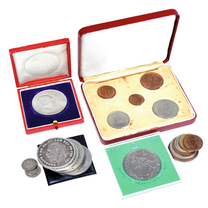 Specimen set, 1971, five coins, Ten Pence to Half-Penny, good very fine, in Royal Mint case; together with a small collection of commemorative crowns and pre-decimal coinage.