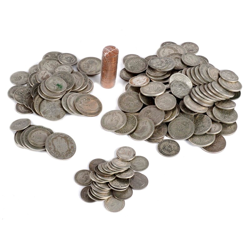 A substantial collection of British 20th Century pre-decimal coins, representing most denominations, including debased silver, cupro-nickel, and bronze examples; together with a small quantity of world coins, mainly varying degrees of circulated condition [estimated as in excess of 3,000 coins].