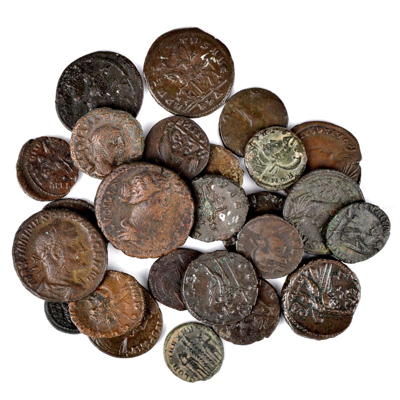 A small collection of Roman bronze coins