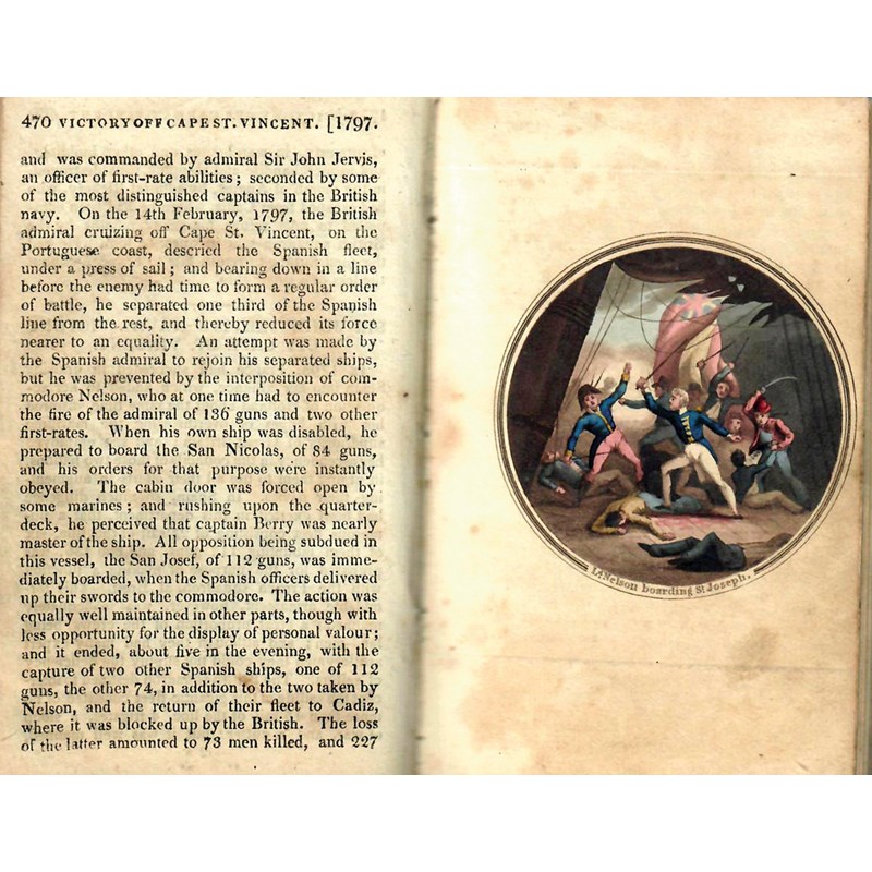 'The Naval and Military History of the Reign of George III', an early 19th Century half bound volume describing the salient military actions of the period, and illustrated with circular polychrome prints after Edward Orme, being editions of the same prints found within contemporary box medals (E 1074 and 1086).