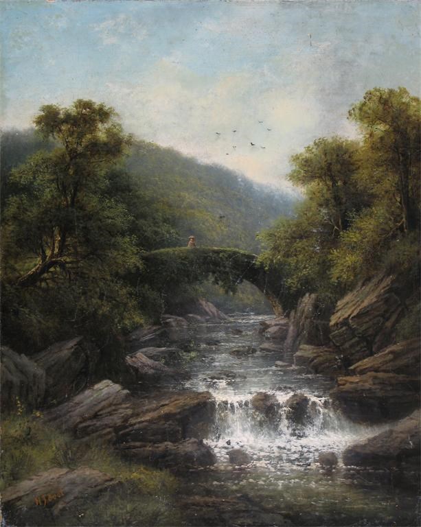 Henry J. Bool (Late 19th Century) Views of a bridge over a river in a wooded valley A pair