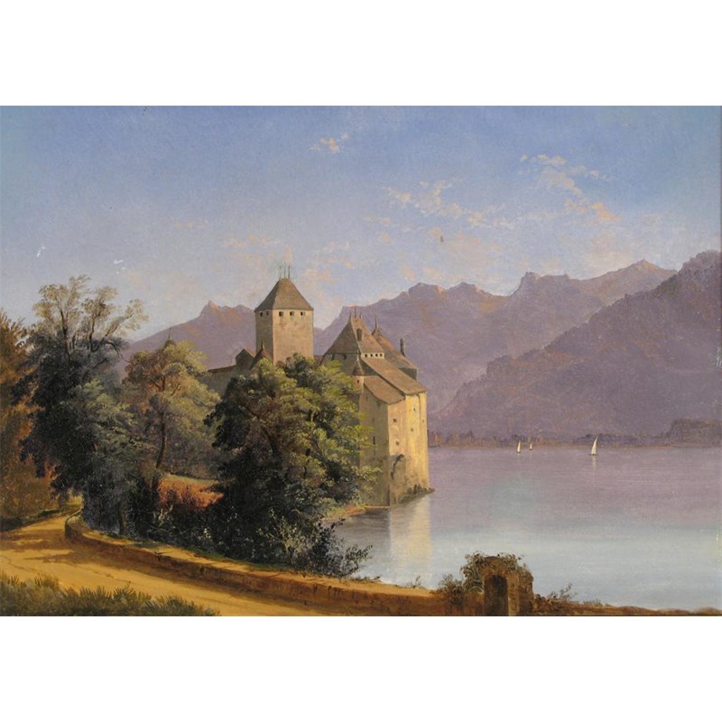 Continental School 20th Century A castle by an Alpine lake Oil on panel 31 x 44cm; 12 x 17in ...