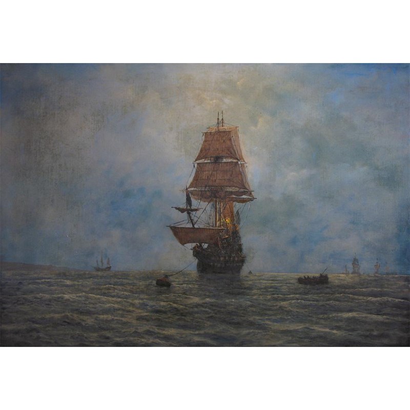 Graham Hedges (b. 1952) Moonlit Man 0'War at anchor Signed Oil on canvas 70 x 100cm; 27 x 39in