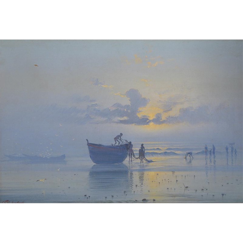 Sardar Ganda Thakar Singh (Indian 1899-1976) Fisherfolk on the shore Signed Oil on canvas 35...
