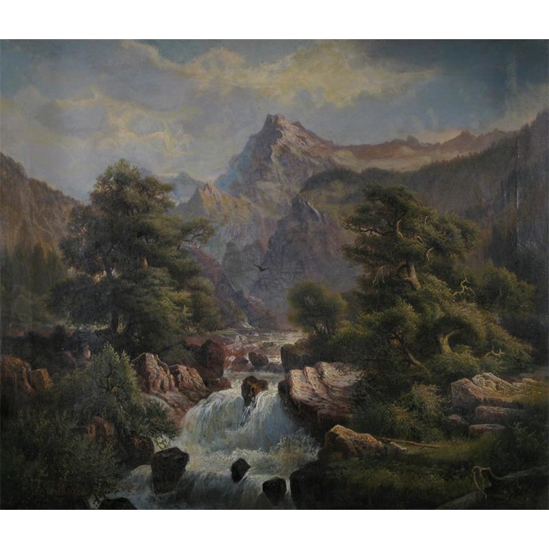 N. Mocek (Czech c. 1900) Mountain river landscape Signed Oil on canvas 46 x 55cm; 18 x 21
