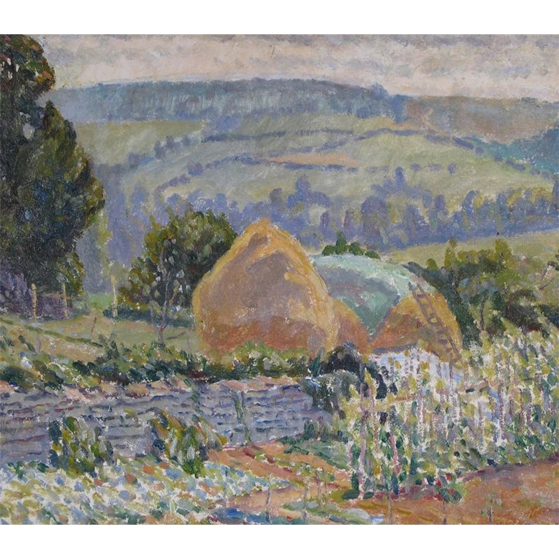 Vincent Henry Lines (1909-1968) Haystacks in a landscape Signed Oil on board 29.5 x 34cm; 11...