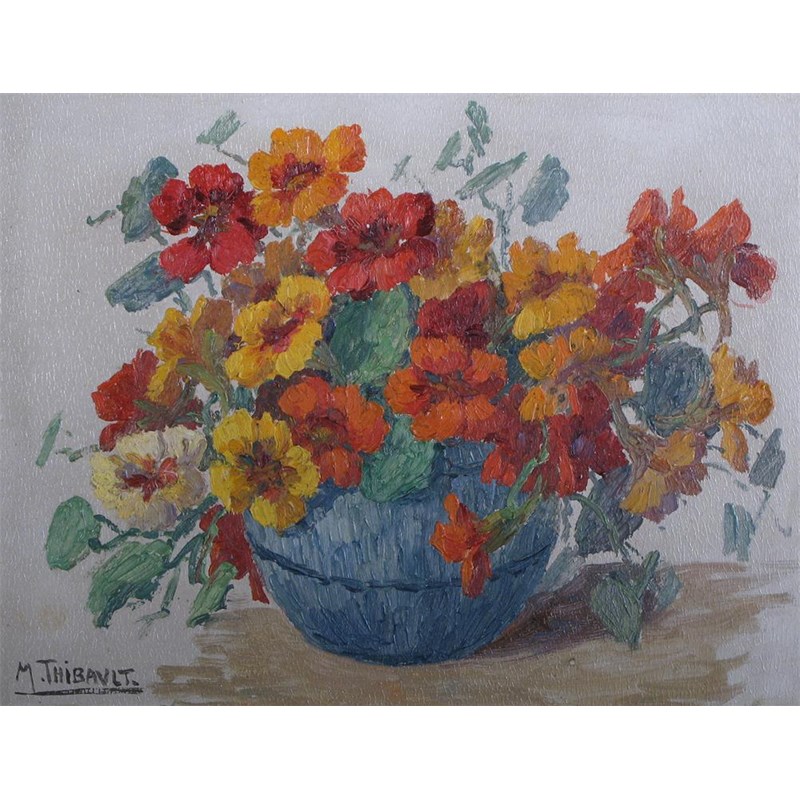 Marcel Thibault (20th Century) Nasturtiams Signed Oil on board 25 x 33cm; 10 x 13in