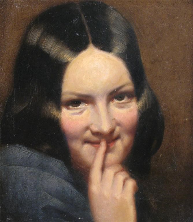 English School 19th Century The coy smile Oil on board 33.5 x 28.5cm; 13¼ x 11¼in