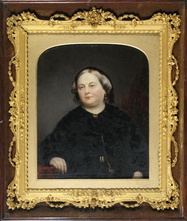 Oil on board or ivorine, possibly over a photographic base, in a gilt frame and case