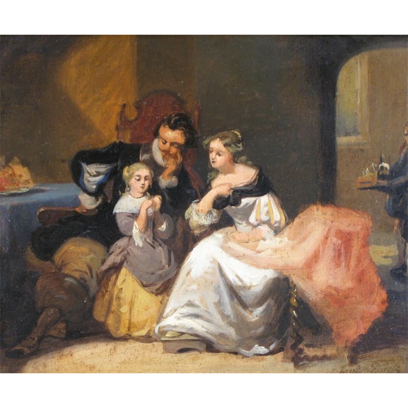 Charles van den Daele (Belgian 19th Century) A family group Signed Oil on panel 24.5 x 30.5cm; 9½...