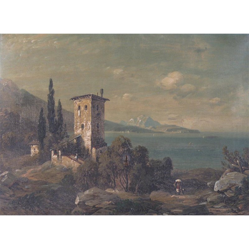 Auguste Seidel (1820-1904) View on the Italian lakes Signed Oil on canvas 56 x 78cm; 22 x 31in