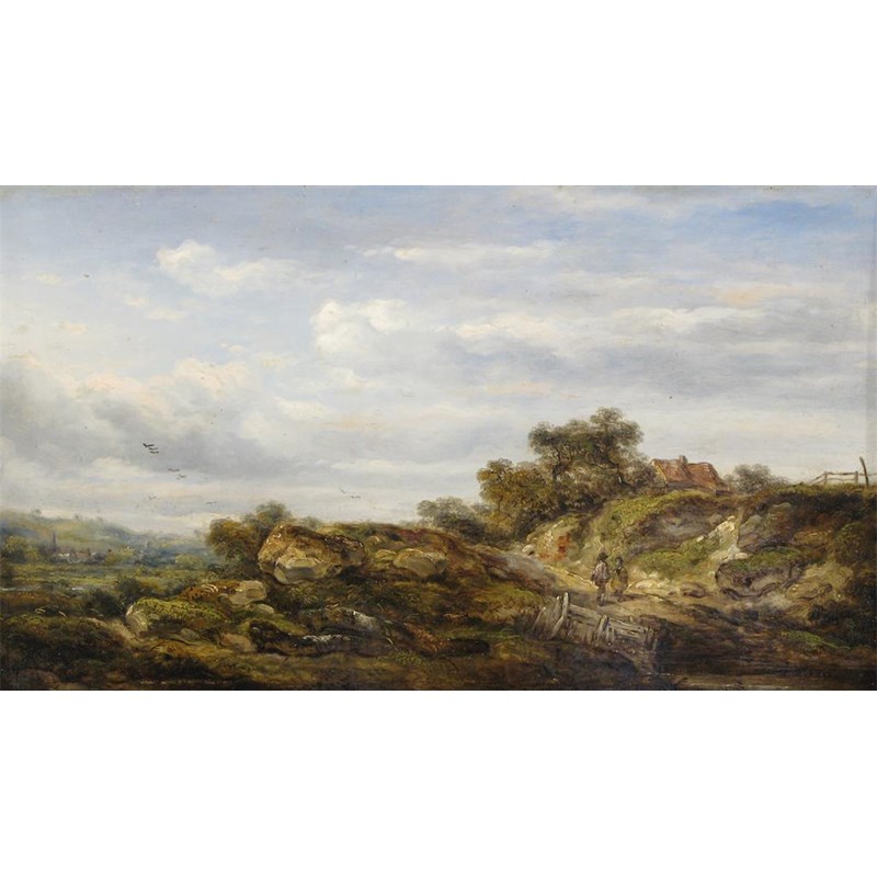Richard H. Hilder (1813-1852) Figures on a path by a cottage Signed and dated 1841 Oil on panel...
