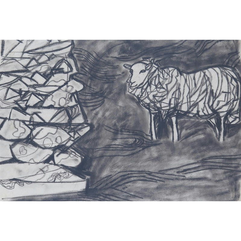 ‡Brian Bradshaw (b.1923) A sheep by a dry-stone wall Grisaille pastel 37 x 54cm