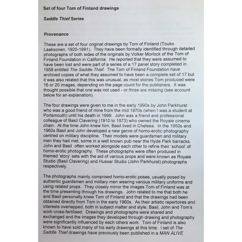 The vendor has had the drawings identified by Volker Morlock through the Tom of Finland foundation in California