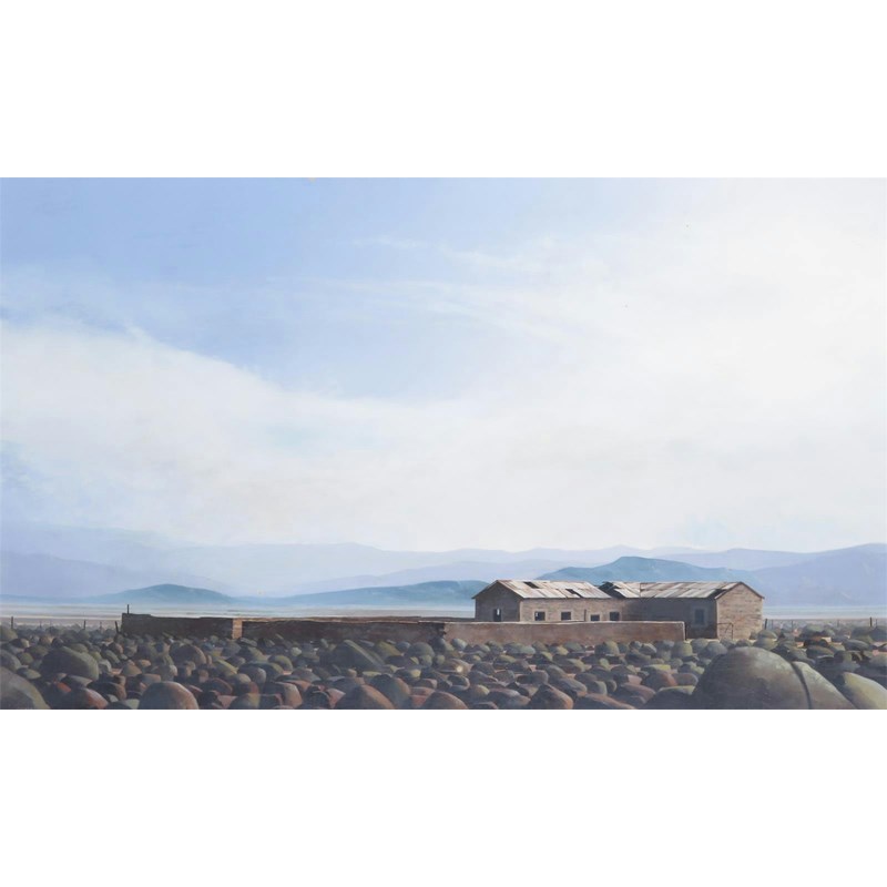 Christopher Haskins (South African 1957-1999) The Pig Pen Signed Oil on paper 36.5 x 60.5cm