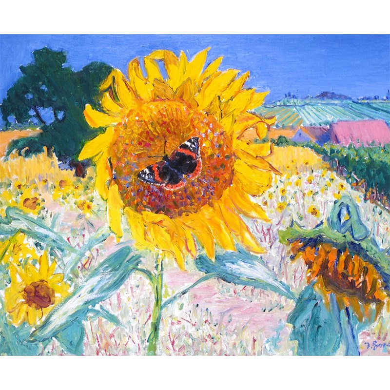 ‡Frederick Gore R.A. (1913-2009) Sunflowers and butterfly Signed Oil on canvas 50.5 x 61cm