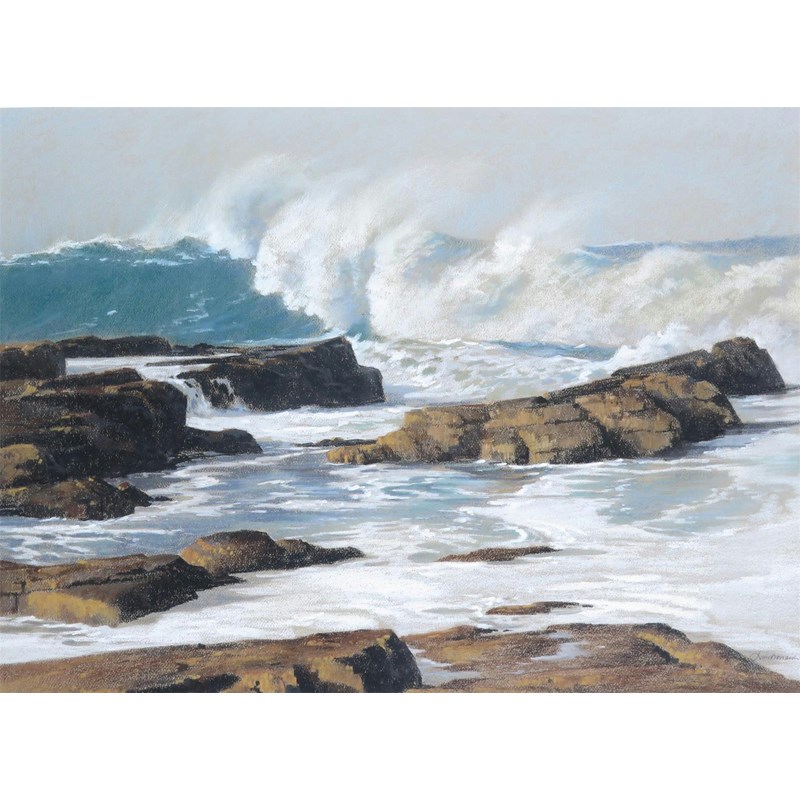 Kim Donaldson (South African b.1952) Waves on a rocky shore Signed Pastel on buff paper 52 x 71cm