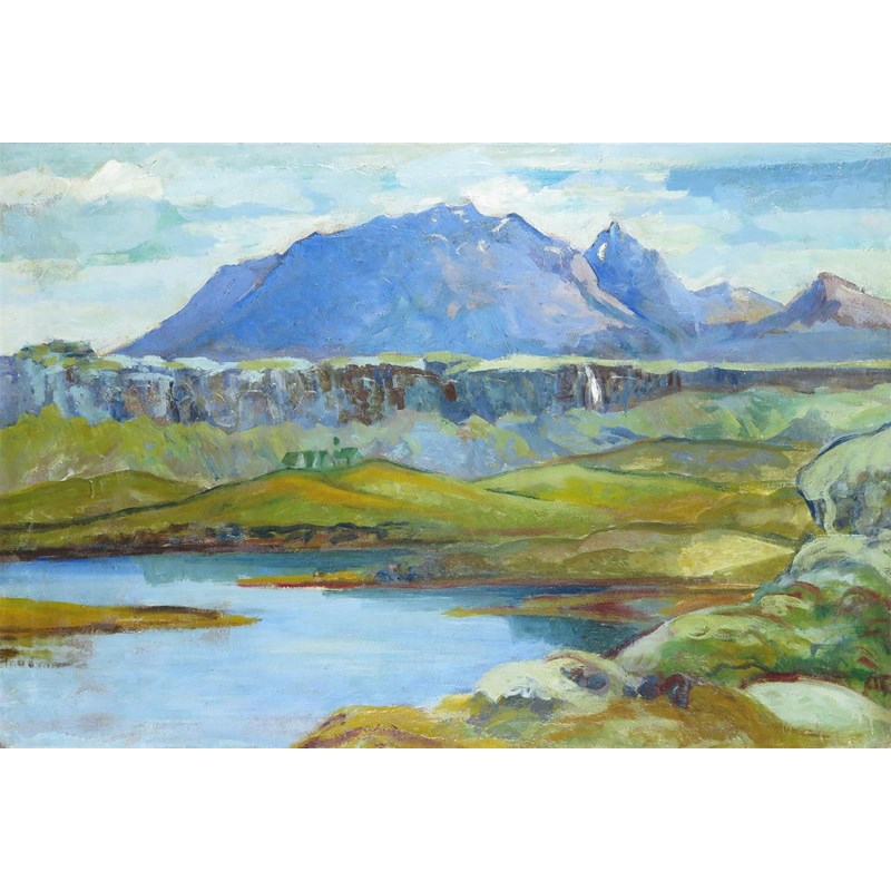 Circle of George William Russell A lakeland landscape Possibly signed with initials lower right...