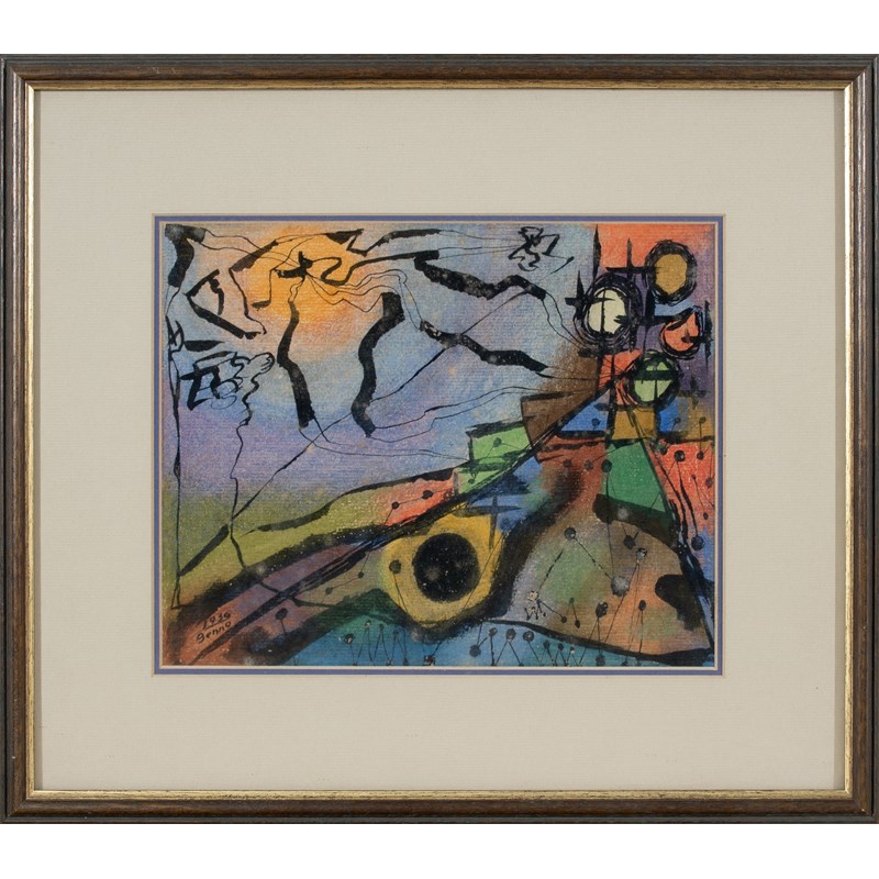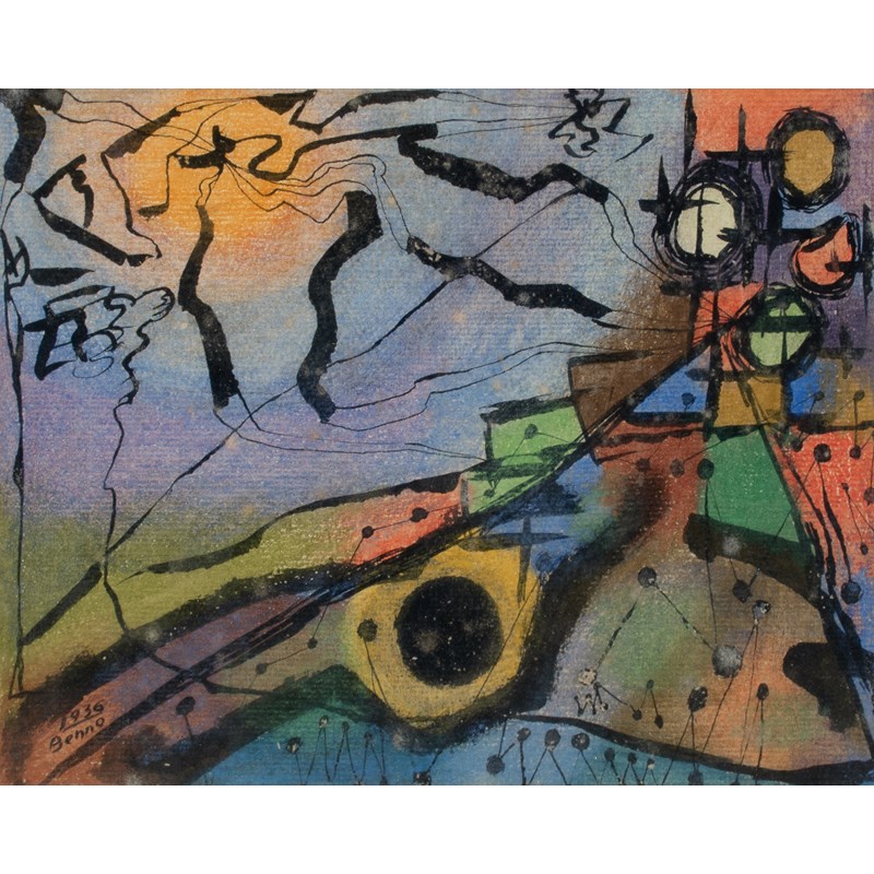 Signed and dated 1936/Benno (lower left), and further signed and inscribed B.G. Benno/Rue Campagne Premiere/Paris (14r)/"Paysage" (to labels)