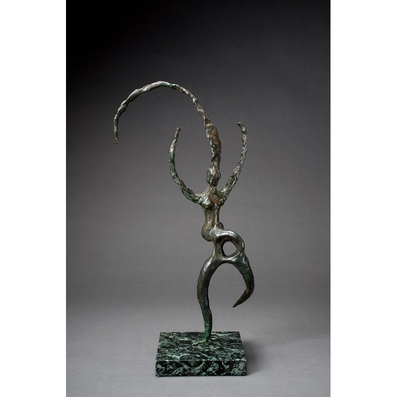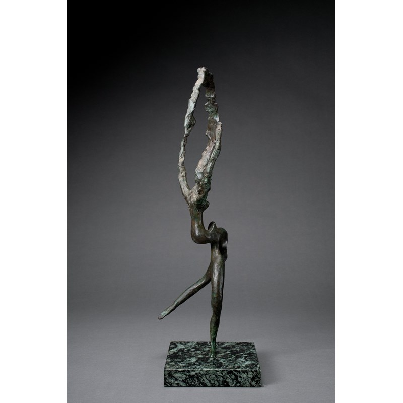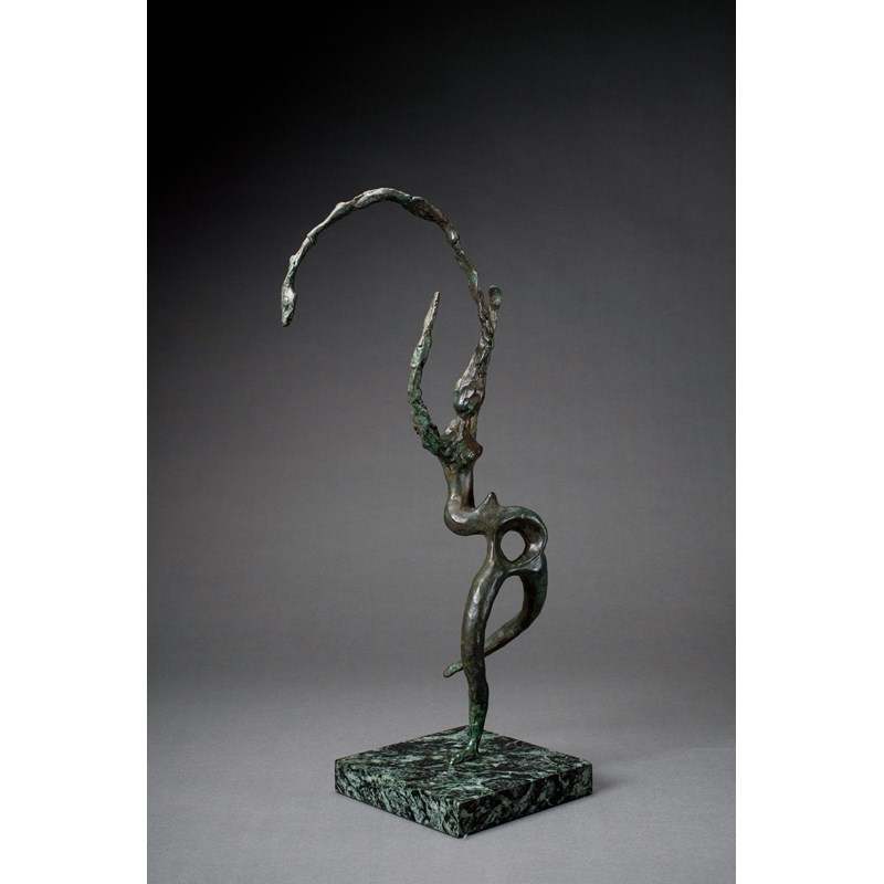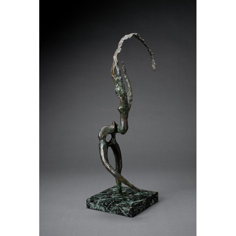 Bronze with green patination on a marble base