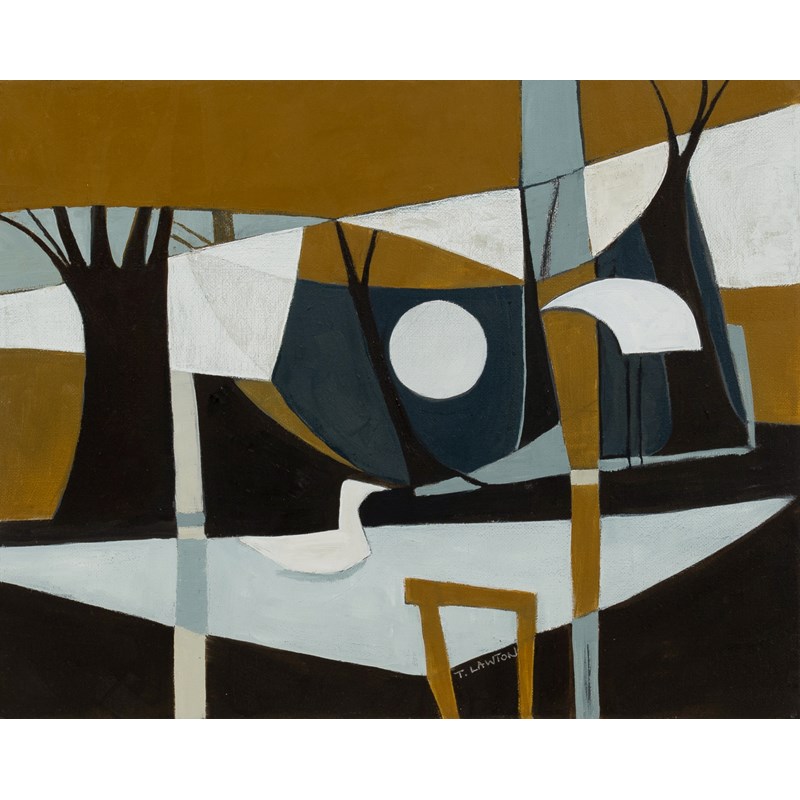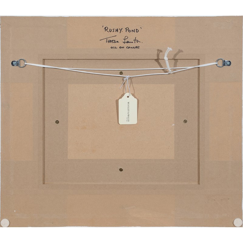 Signed T LAWTON (lower centre), and further signed and inscribed 'Rushy Pond'/Teresa Lawton (to reverse of frame)